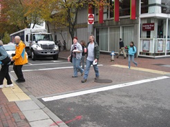 Key to pedestrian safety is enforcement of vehicles’ failure to yield, red-light running, and speeding. Periodically, the police do "spot enforcement" of motorist and cyclist failure to yield in crosswalks, though not frequently or regularly. For pedestrian safety, it is important that motorists and cyclists obey the law and stop at crosswalks.