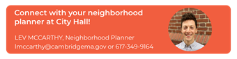 For more information contact Neighborhood Planner Lev McCarthy at lmccarthy@cambridgema.gov or 617-349-9164.