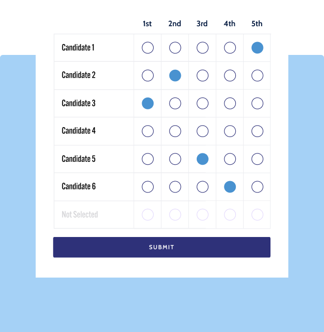 - You don't need to rank all the candidates; you may fill in as many or as few choices as you please.