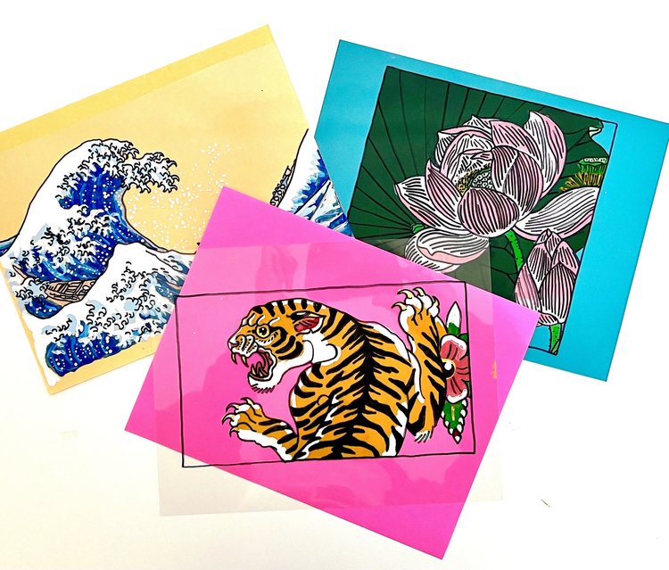 Learn about the centuries-old art of reverse glass painting and create your own reverse painting! Choose from three images and paint it using acrylic paint on clear acetate.