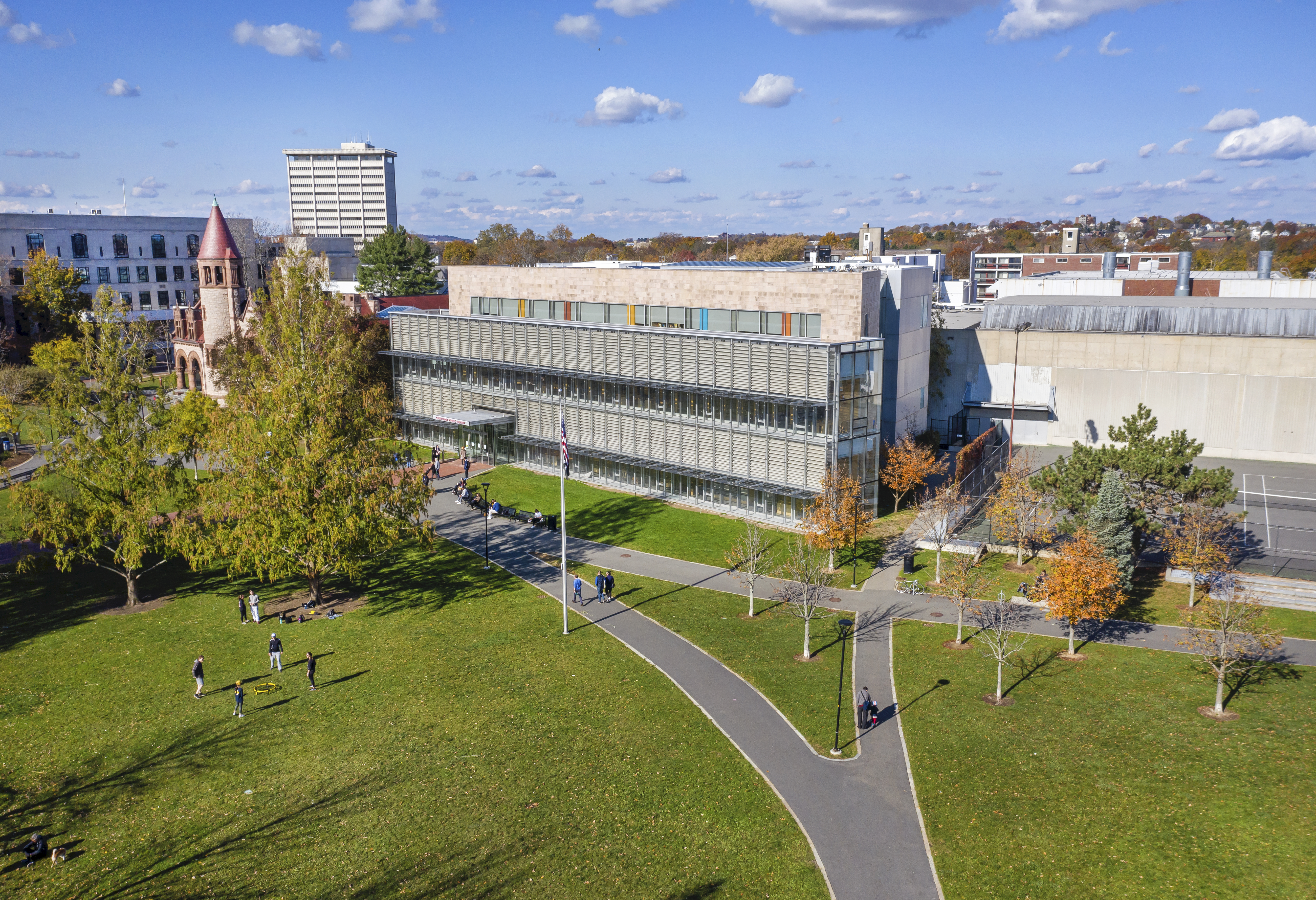 Aerial photo of the Main Library and grounds