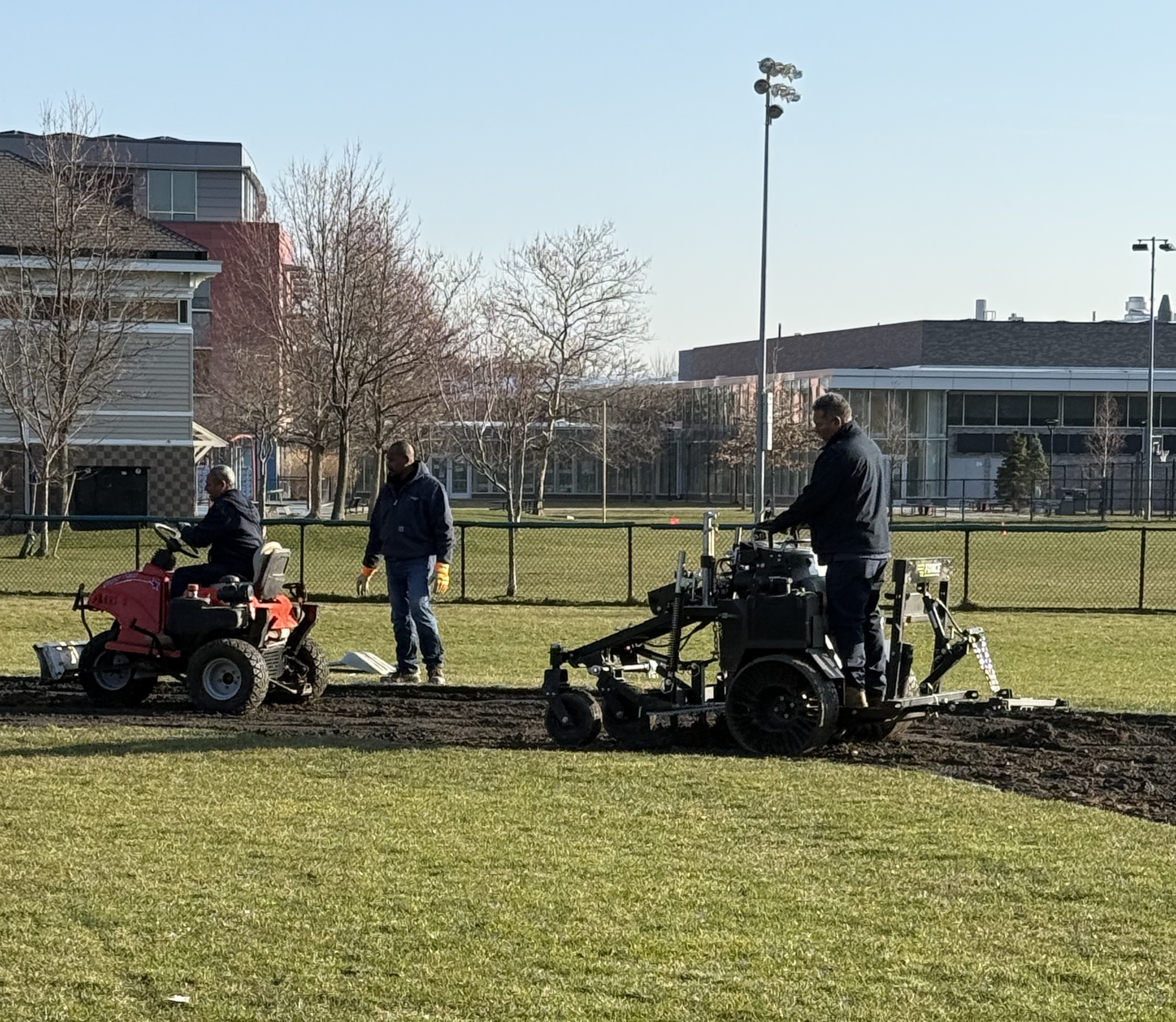 - Removing debris that fell on the fields during the winter season and recent storms.
