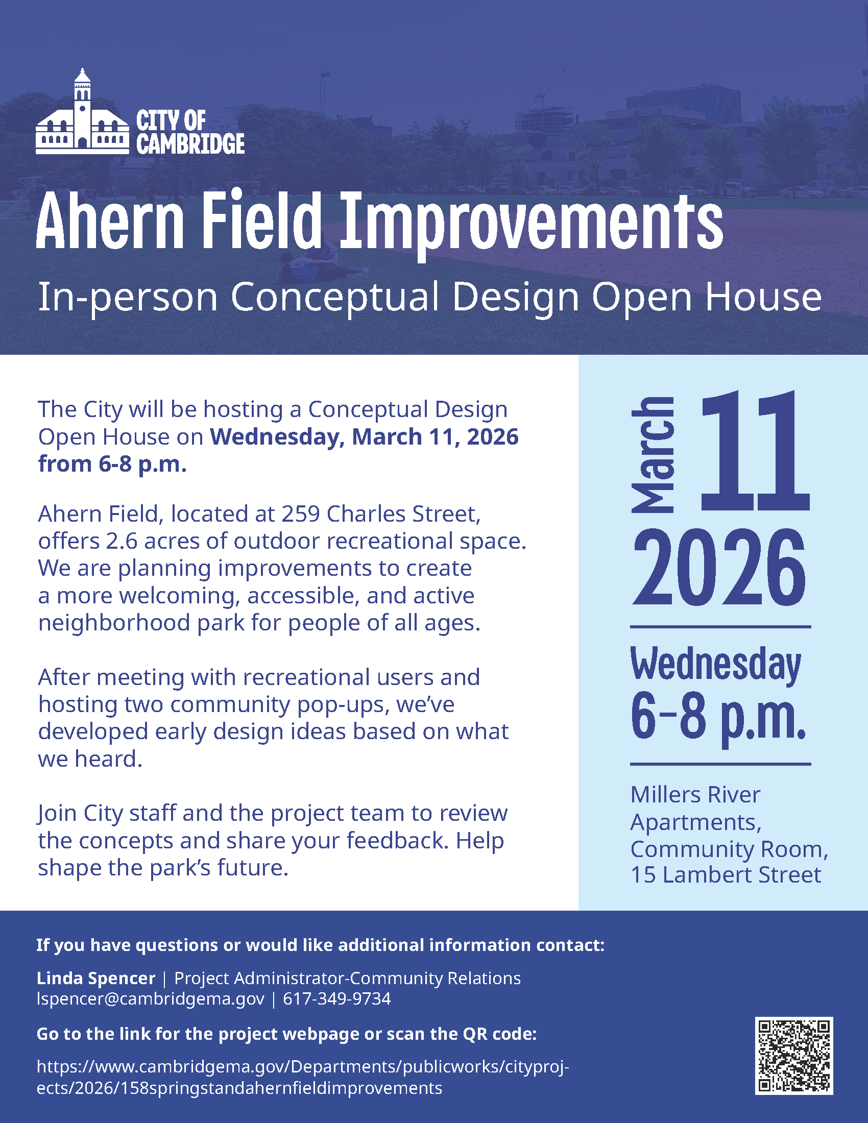 Go to the link for the project webpage: https://www.cambridgema.gov/Departments/publicworks/cityprojects/2026/158springstandahernfieldimprovements