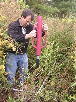 Vinny Falcione (CWD) installing monitoring quads before beetle release.