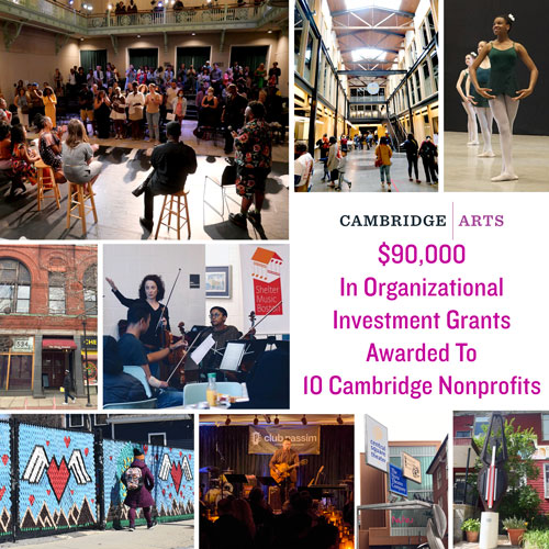 Ten Cambridge cultural organizations have been awarded $90,000 in Organizational Investment Grants by Cambridge Arts and the City of Cambridge. The nonprofits are music, theater, dance and exhibition venues and community art centers. They offer teaching, professional development, and live music and dance and theater. The funding program provides $9,000 grants to each nonprofit to support operational costs, sustainability, and resiliency for local cultural organizations that benefit Cambridge residents.