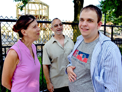Dominic Killiany (right) with his parents Susan Cicconi (left) and Michael Killiany at Louis A. DePasquale Universal Design Playground at Danehy Park, Cambridge, August 2021.