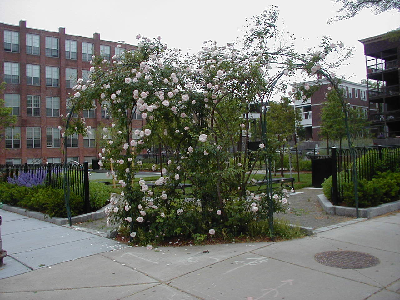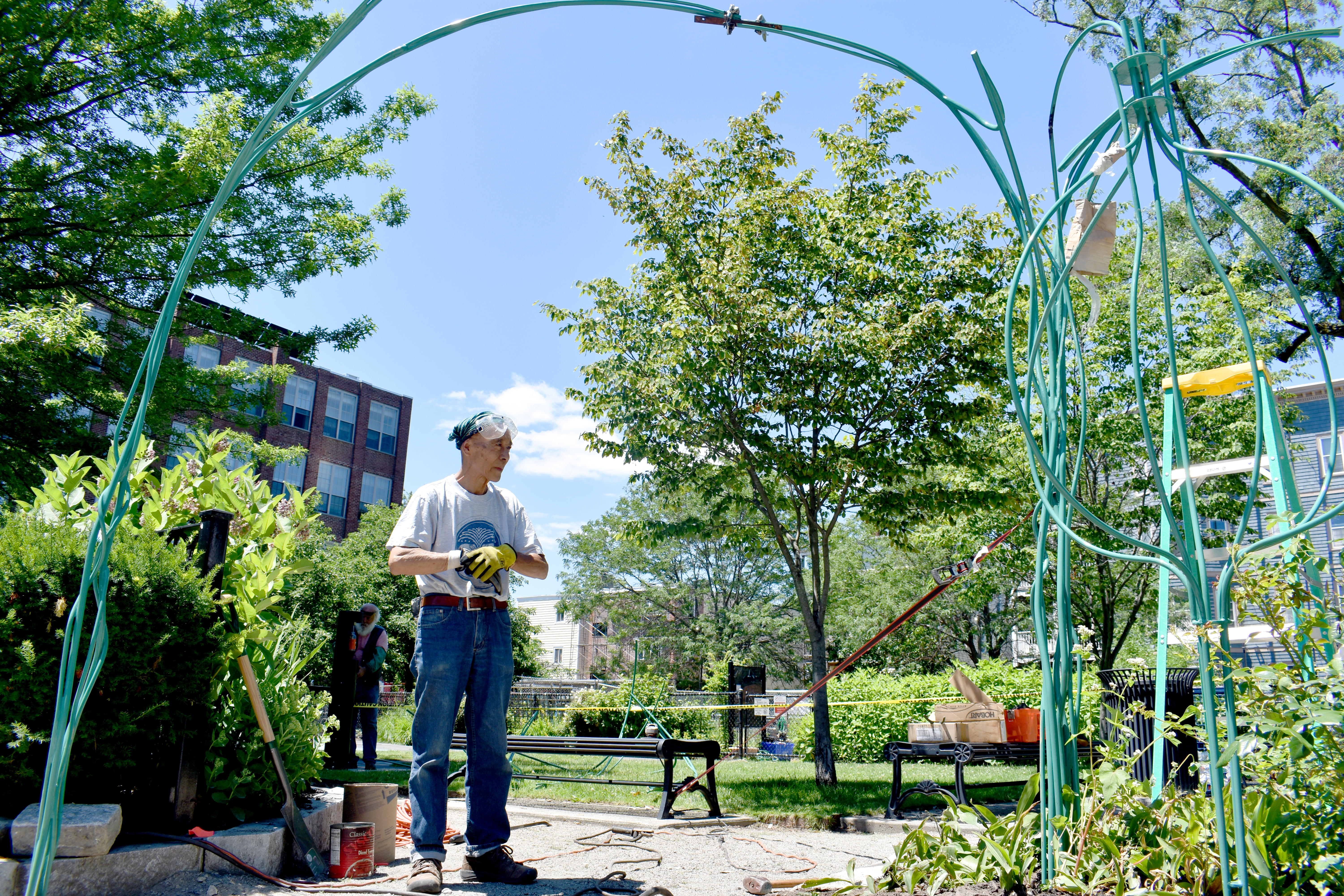 In June 2021, New Hampshire artist Bart Uchida and fabricator Tom Whitney reinstalled Uchida's fully restored “Rose Arbor” gateway into Squirrel Brand Park in Cambridge's Port Neighborhood. Uchida was initially commissioned under the City's under the Percent-for-Art Program to create the steel trellis when the park was renovated in 2004. Repair was required after the structure was apparently struck by heavy equipment.