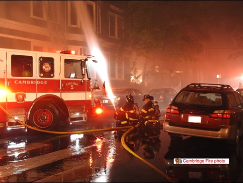 On Nov. 28, 1977, Engine 5 relocated to the quarters of Ladder 2, 386 Portland St., while a new floor was installed in their own quarters. The company moved back to 1384 Cambridge St. on Apr. 3, 1978.