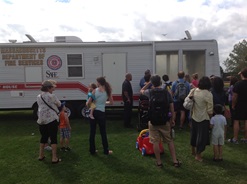 Thanks to our friends at Cambridge Community Television (www.cctvcambridge.org), we are able to offer a video that demonstrates what takes place inside and outside the Department of Fire Services' Sprinkler Trailer, a two-in-one educational vehicle. Inside, you will be shown common household fire and life safety concerns and fixes, as well as experience a smoke alarm activation due to 'smoke' and participate in safely evacuating the room to the outside. Outside, you will watch as our instructors light a tee shirt on fire, the smoke builds to the point it activates a sprinkler head above the shirt, then watch as the water quickly and efficiently puts out the fire.