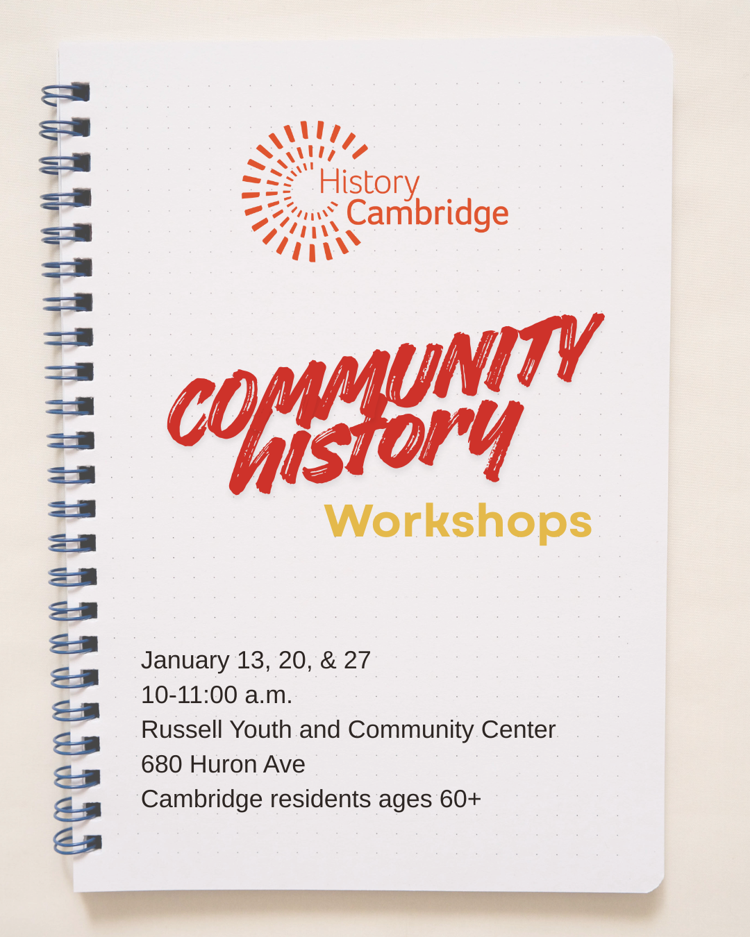 Calendar event imageDo you have memories of growing up in Cambridge? Have you seen the city change over the years? Join History Cambridge for a 3-part series exploring personal and community history.