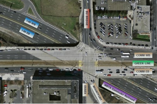 • Bicyclists will be routed to Amory St and St. Mary's St as an alternative to north-south bike travel between the BU Bridge and Mountfort St/Essex St.