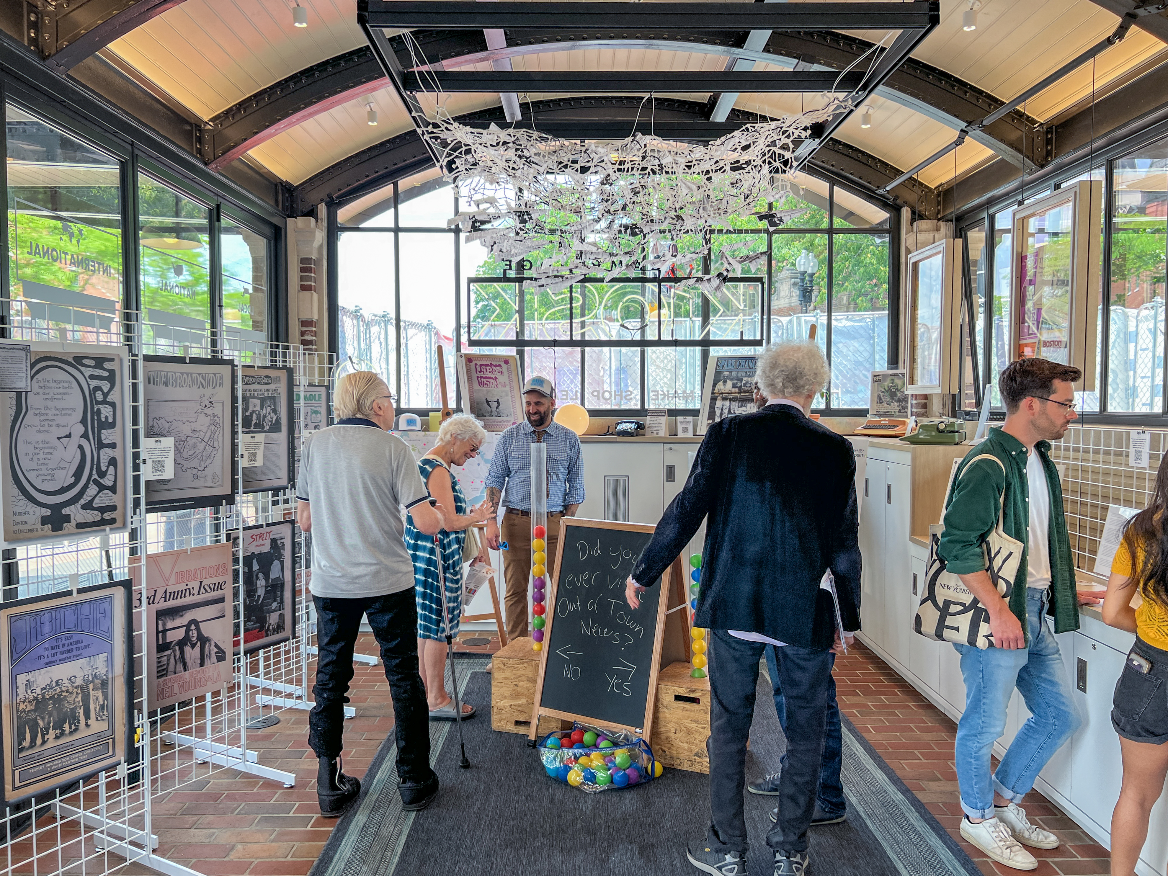 The inaugural exhibit paid homage to the KiOSK’s storied history with a pop-up newsstand celebrating Cambridge’s print media legacy. Visitors witnessed how radical newspapers, music publications, and of course, Out of Town News itself shaped the city’s identity. Weekly “15 Minutes of Cambridge” talks brought these stories to life, creating a bridge between history and today’s conversations.