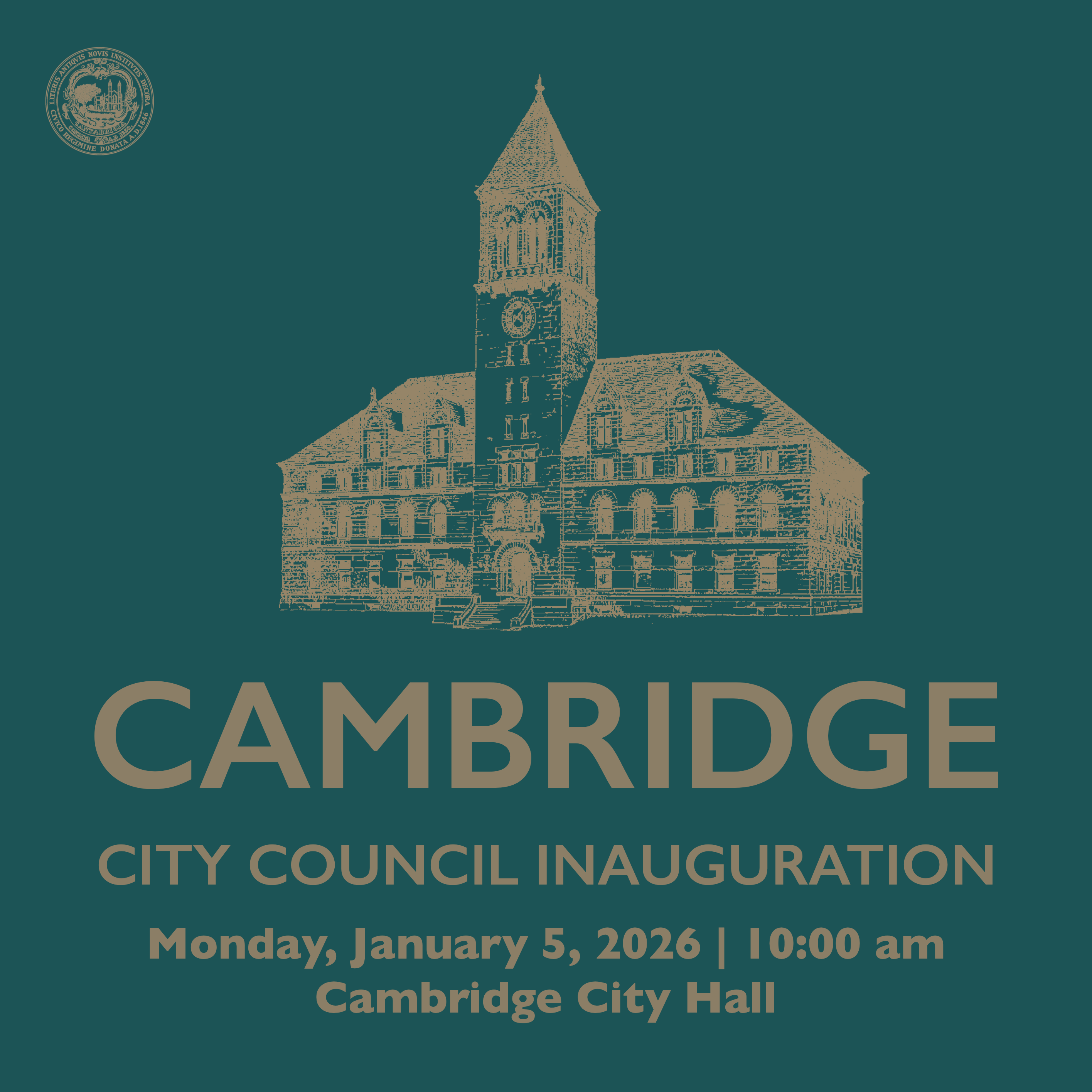 Please join us for the 2026 Inauguration of the Cambridge City Council on Monday, January 5, 2026, at 10 a.m.